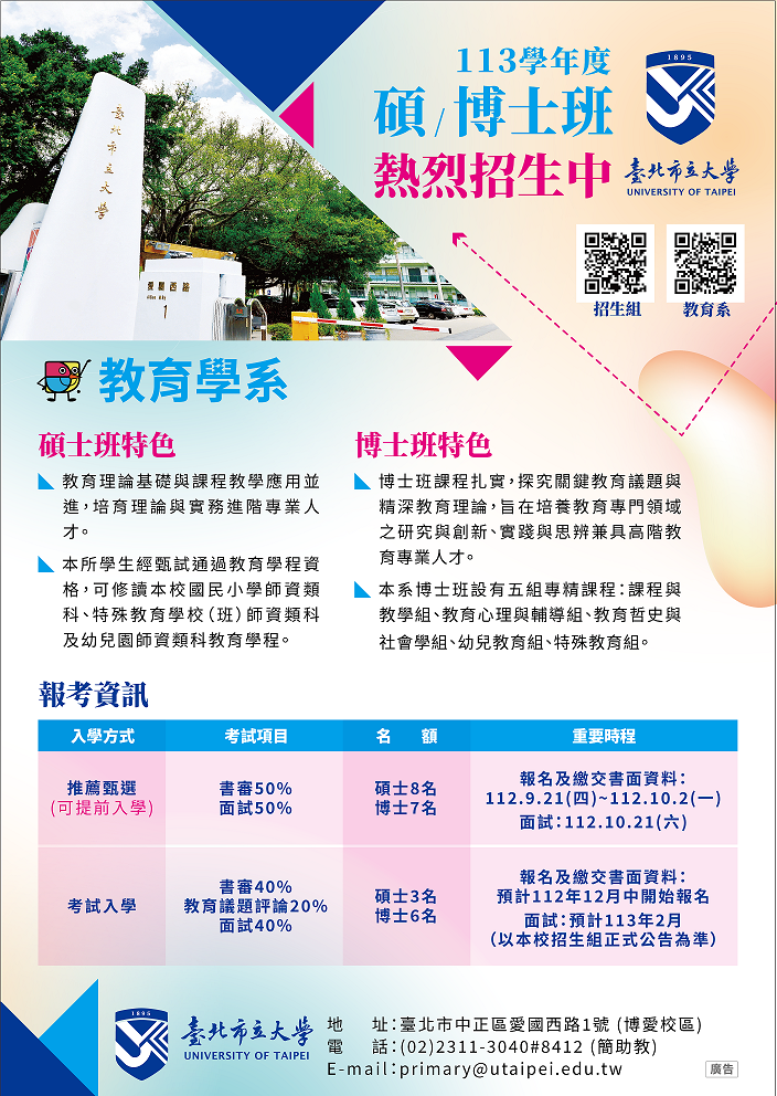 詳細招生資訊請參閱附件招生海報,或逕至本校招生網站查詢。