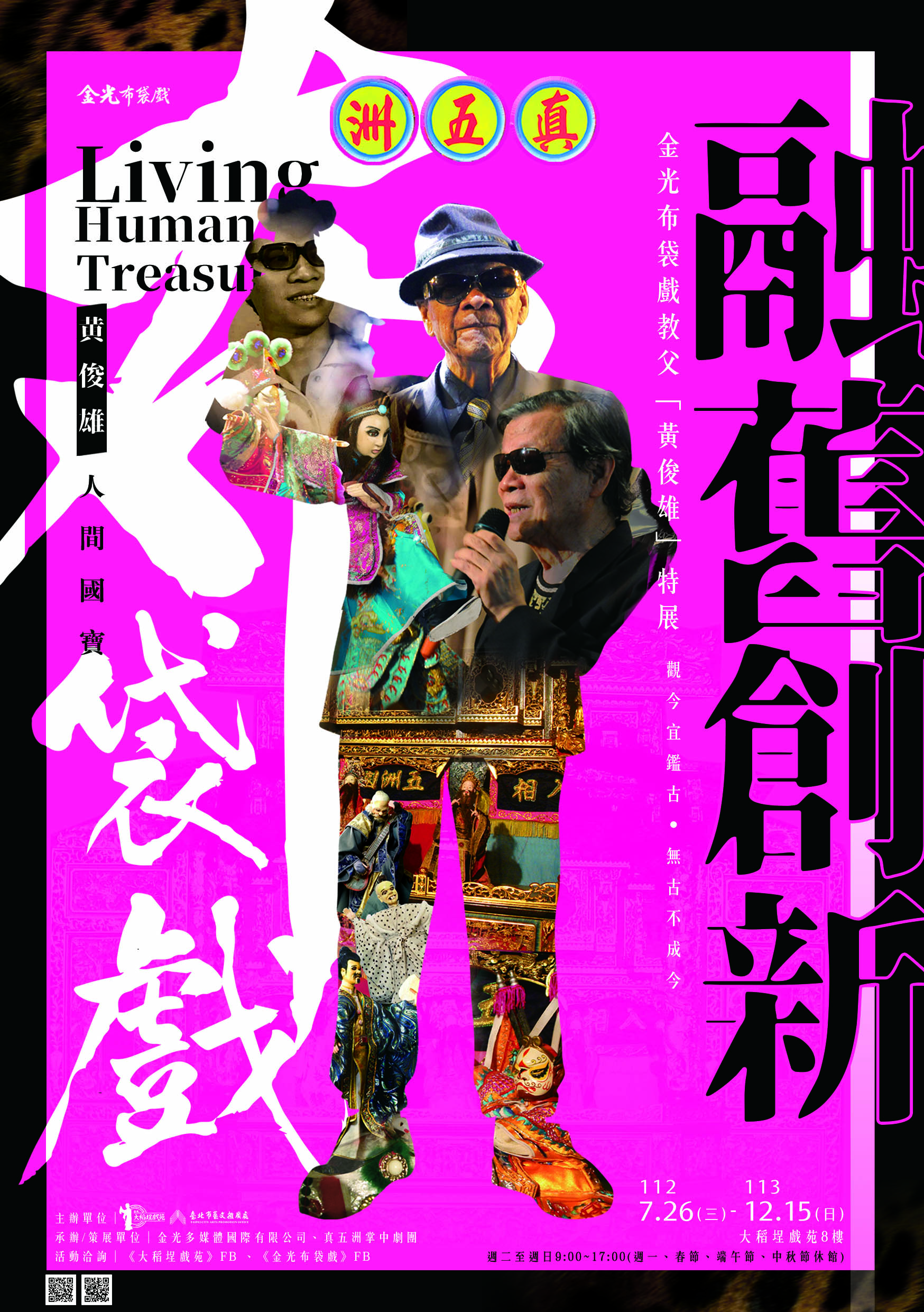 一、本特展以金光布袋戲教父「黃俊雄」傳承與創新布袋戲的 脈絡為主,展出其劇本手稿、蒐藏文物、作品精華片段以 及三代同堂口白傳承的珍貴影像記錄,