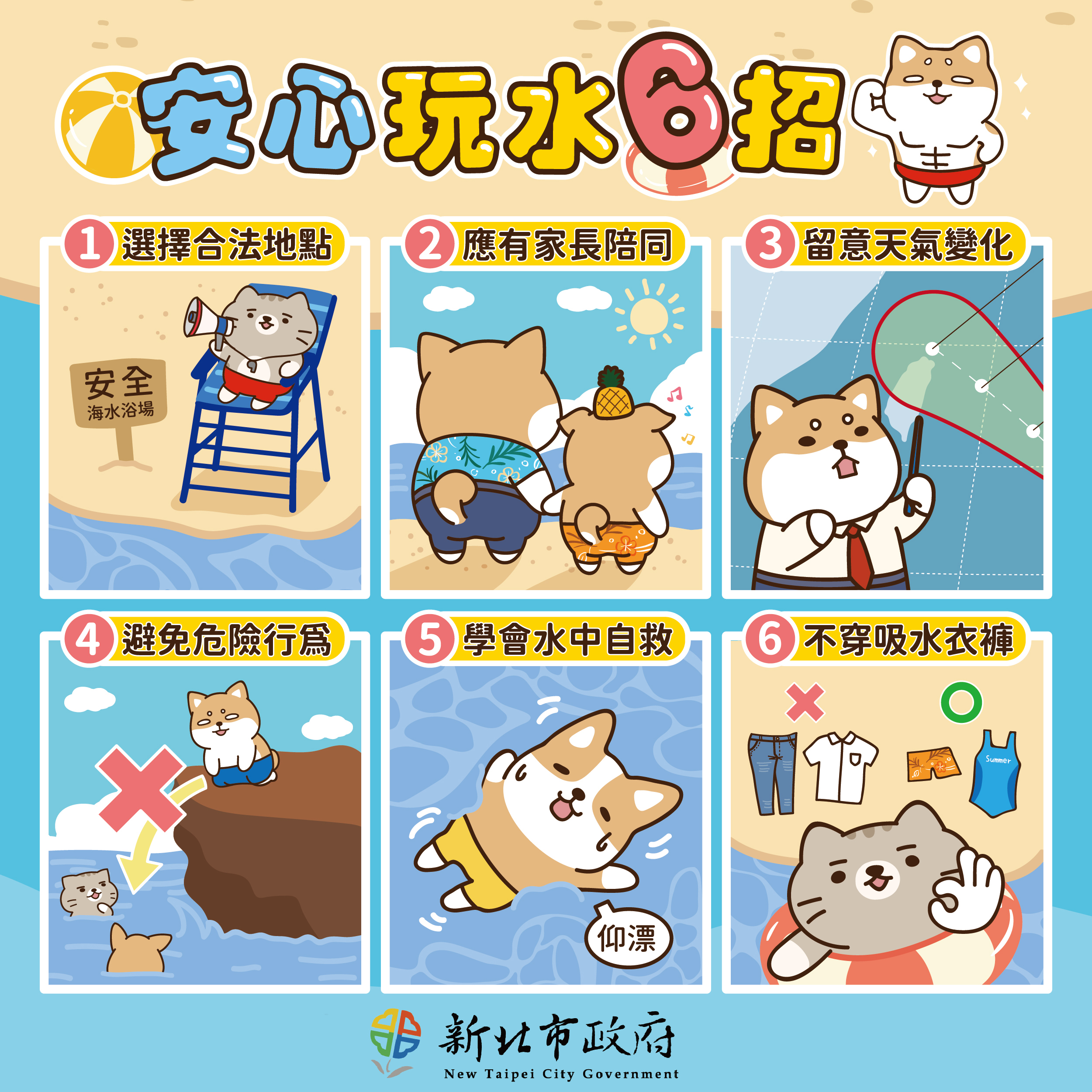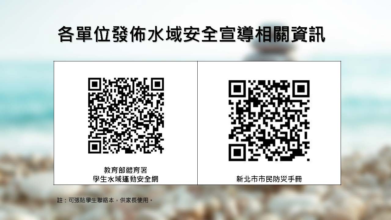 三、近日偶有大雨情形,考量學生(家庭)於假期間,參與露 營或健行等各式活動規劃戲水、涉溪情形,或者從事水域 遊憩(含游泳、衝浪、潛水、獨木舟等)等活動可能性 高,請務必落實水域及遊憩安全宣導,且應穿著救生衣並 選擇合法水域場所、前往有合格救生員駐守之安全水域地 點戲水,強化學生水域安全觀念,避免溺水事件一再發 生。