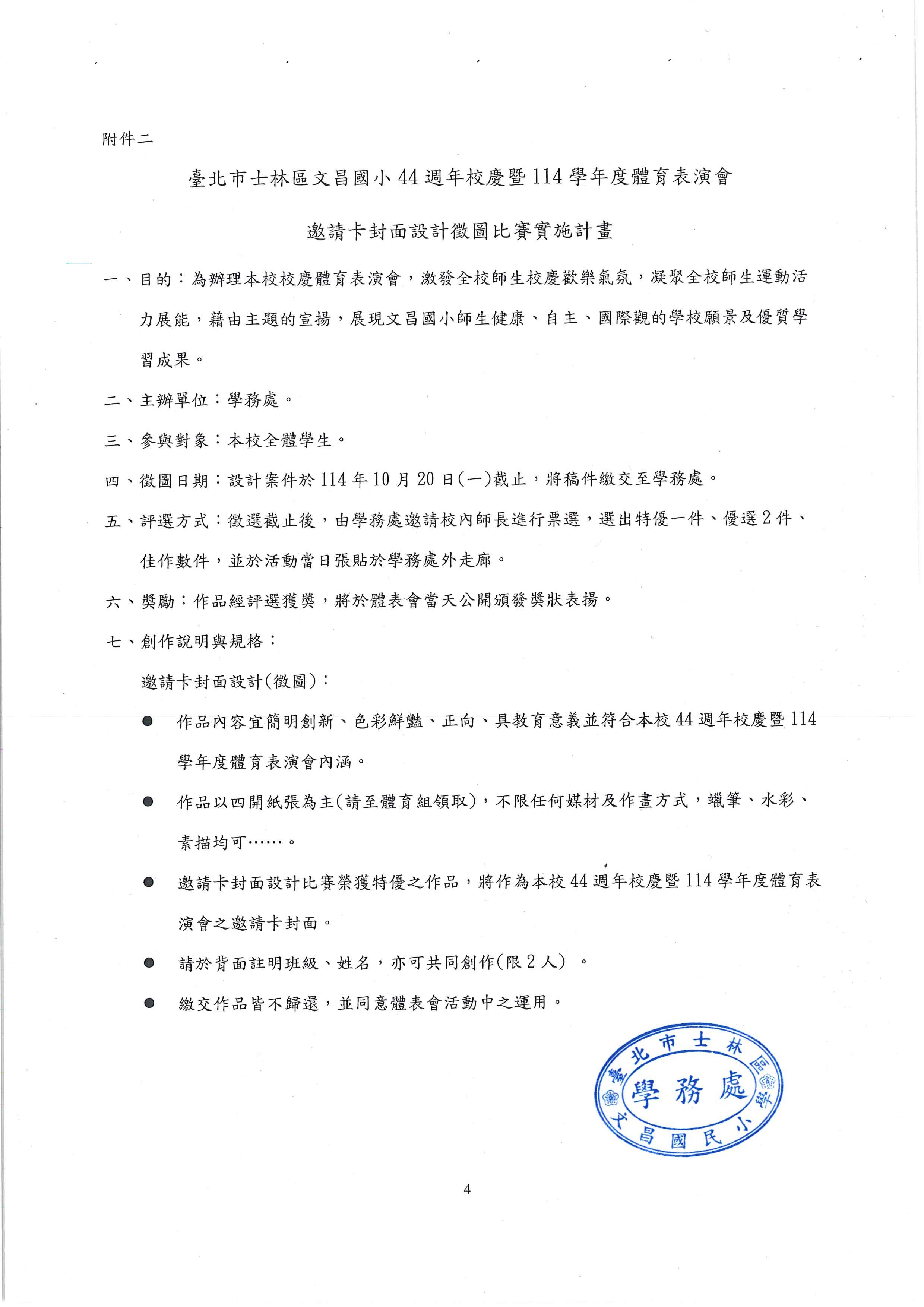 EX.作品內容宜簡明創新、色彩鮮豔、正向、具教育意義並符合本校44週年校慶暨體育表演會內涵。
