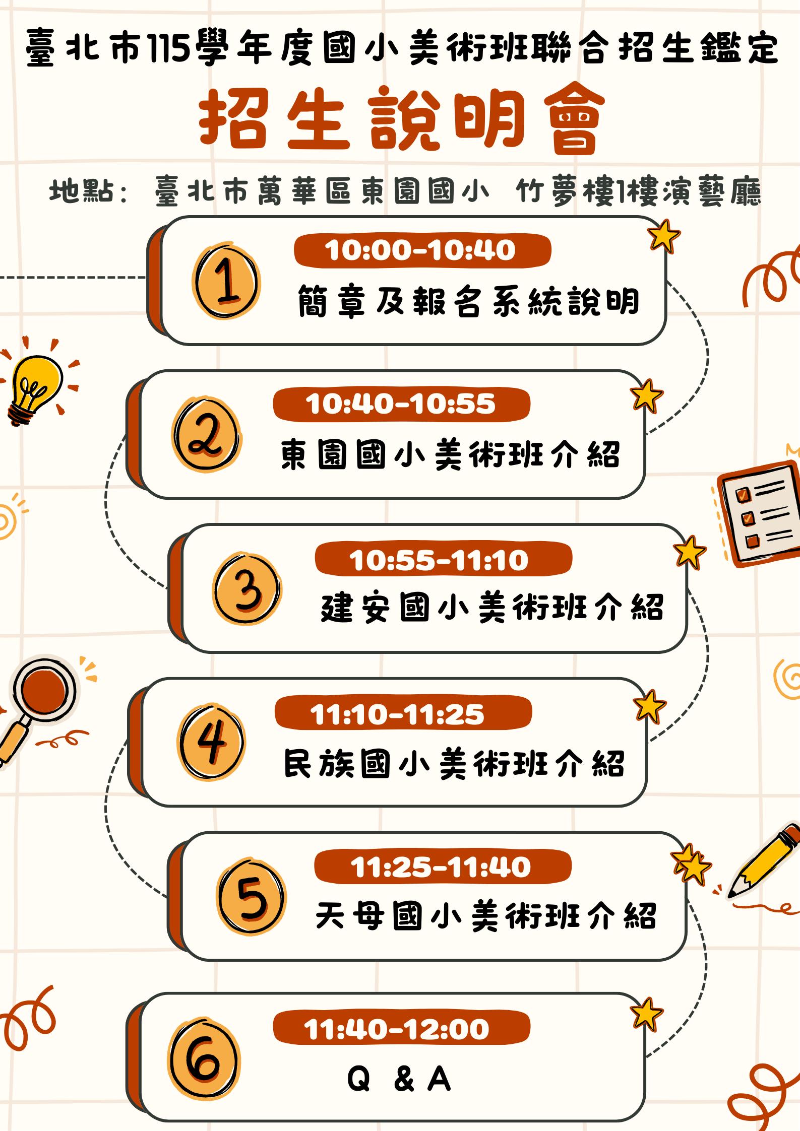 一、本校承辦臺北市115學年度國民小學藝術才能美術班招生鑑定說明會。